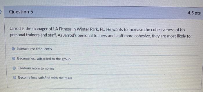 Solved 3 Question 5 4 5 Pts Jarrod Is The Manager Of La Chegg Com